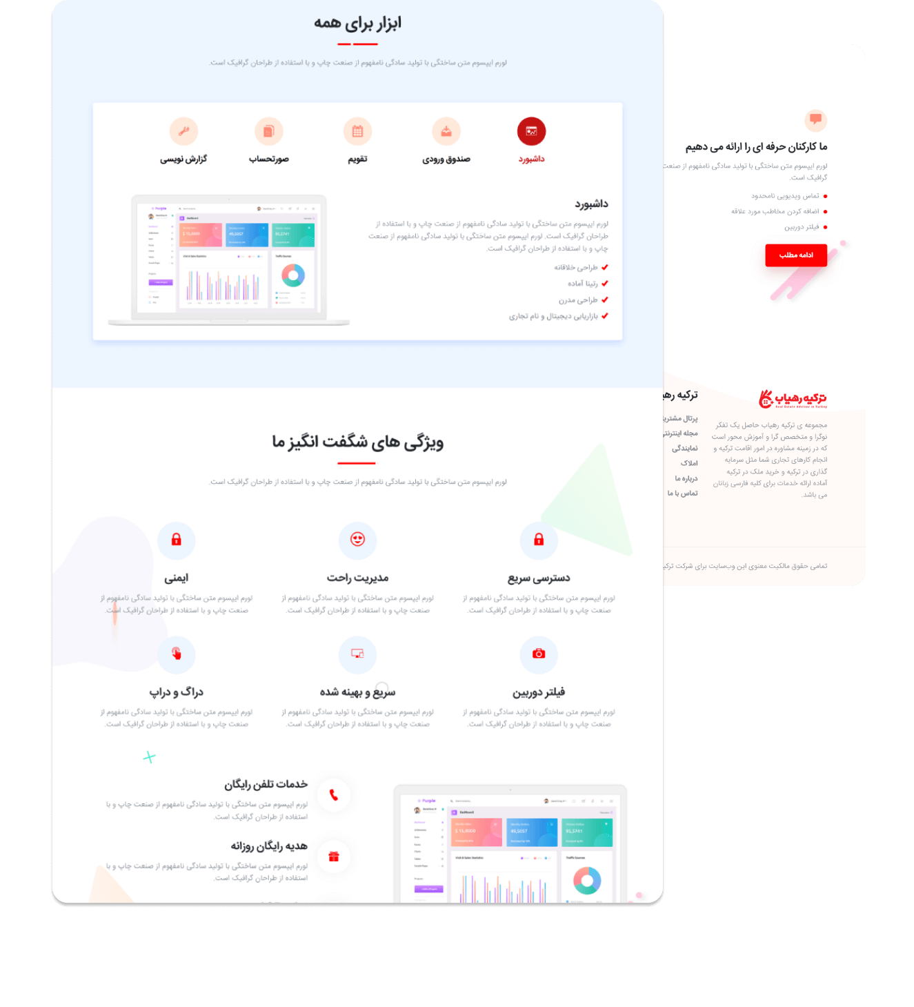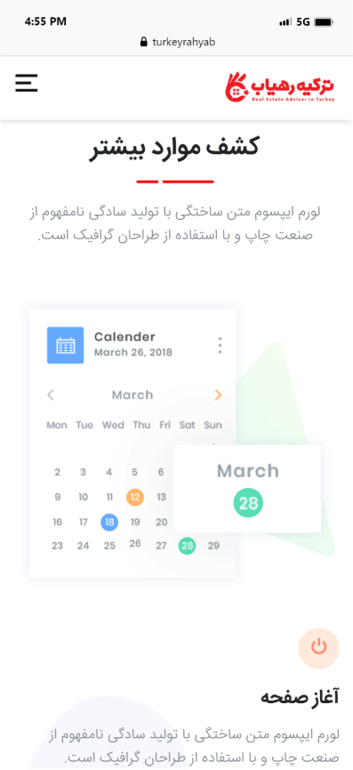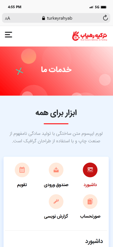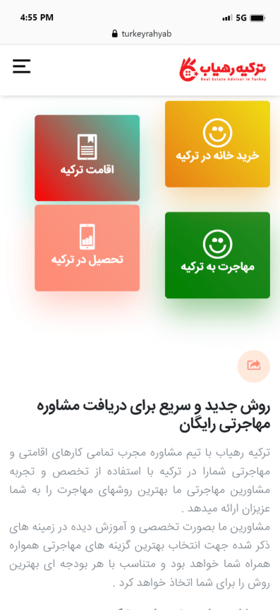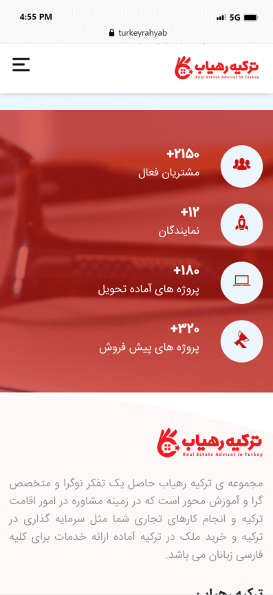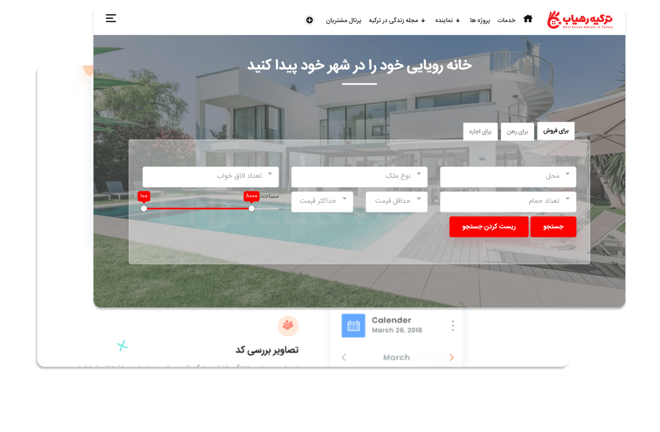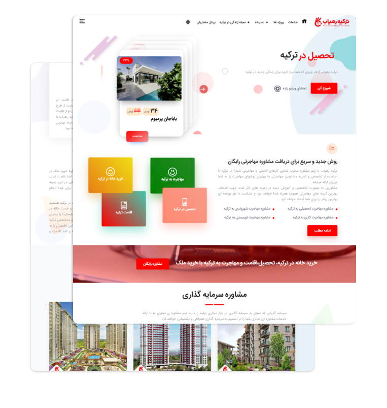 به درخواست موسسه ترکیه رهیاب، تیم متخصص کدترند وب سایت خرید، فروش و اجاره ملک را با بالاترین جذابیت پیاده سازی نمود. تیم کدترند با تحلیل دقیق، کلیه نیازها و دغدغه های موسسه ترکیه رهیاب را برطرف و کسب رضایت را مهترین خواسته خود می داند.